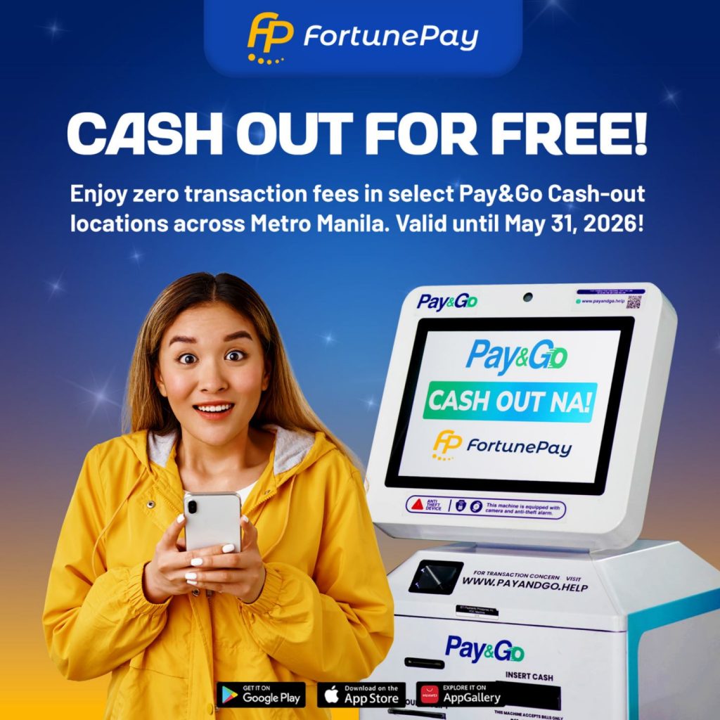 Enjoy zero transaction fees in select Pay&Go Cash-out locations across Metro Manila. Valid until May 31, 2026!